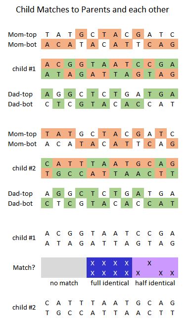 how and where the children match each other. Again, top and bottom are just made up for notation, because the DNA test data does not preserve which